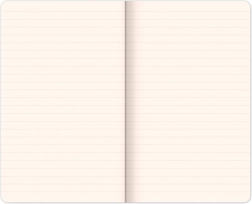 Ruled pages on yellow paper guide your hand and keep text neat. A black ribbon serves as a bookmark, so you can always return quickly to important pages.