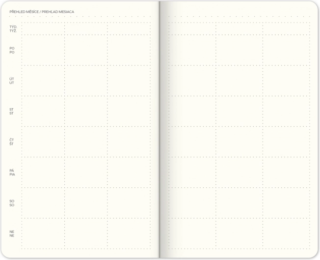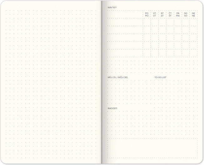 Want to customize your planning? This undated weekly planner My Bullet Planner in a practical 13 × 21 cm format is ideal for beginners to the world of creative journaling. It lets you track habits, write to‑do lists, and plan personal goals — and thanks to the undated calendar you can start anytime. Available in Czech/Slovak.