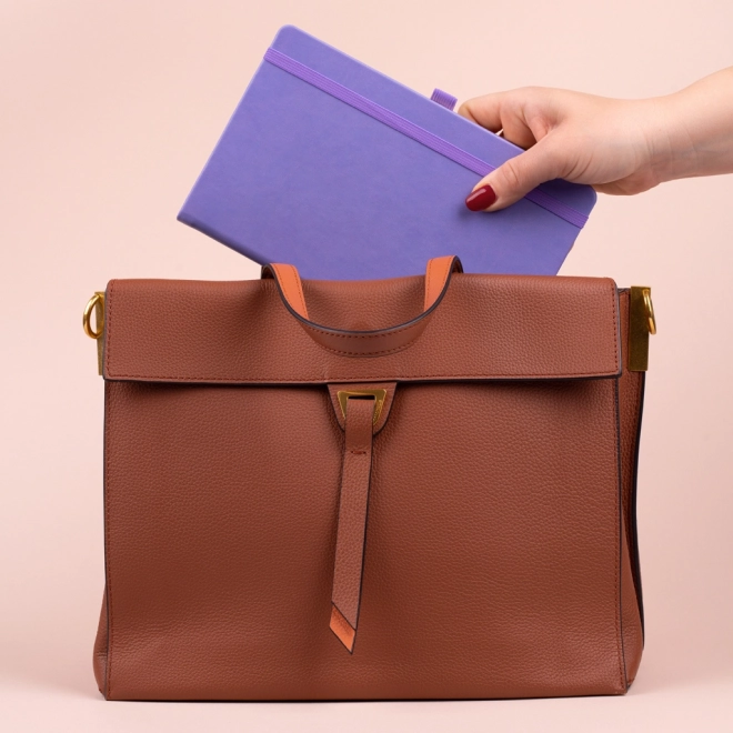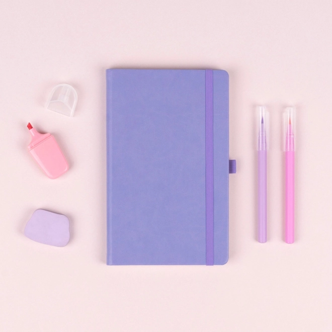 This elegant 13 × 21 cm notebook combines a durable hard cover with a modern lilac design. Thanks to practical features—an elastic strap, pen loop, and fabric bookmark—you’ll always have everything important at hand and your notes neatly organized.