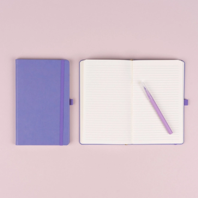 A stylish ruled notebook in trendy lilac, perfect for everyday notes and planning. It features a durable hard book binding, an elastic band, a pen loop, and a fabric bookmark. High-quality yellow paper with 6 mm ruling ensures a pleasant writing experience and a professional look. A great choice for branding with a debossed logo.