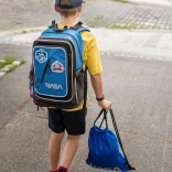This blue bag is an ideal choice for everyday use, whether for school supplies or sports gear. Its durable, washable material ensures long life and easy maintenance. The NASA logo design is not only attractive but also functional, as the logo glows in the dark, adding both style and a safety element.