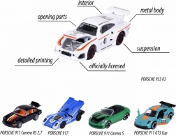 The cars are produced under official PORSCHE license, featuring realistic proportions, authentic prints, and striking bodywork details.