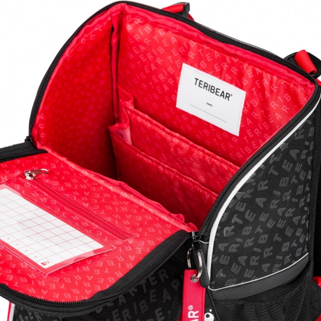 The lightweight, ergonomic BAAGL Zippy TERIBEAR school satchel is ideal for first graders. It offers a sliding back system, durable, water-resistant materials, reflective elements, and smart interior organization for tidy storage of school supplies.
