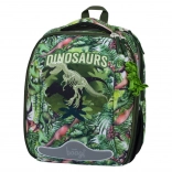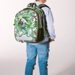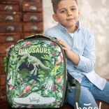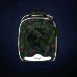 The School Backpack Baagl Dinosaurs is designed with a robust and reinforced body that protects school supplies like a protective shell. The two-compartment system ensures optimal load distribution, with the front compartment containing a practical organizer, a pocket for small items, and a key clip.