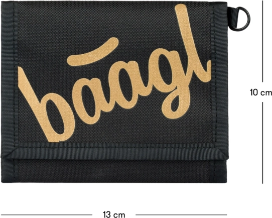 Stylish student wallet BAAGL in the Logo Gold design offers durable construction, reliable hook-and-loop (Velcro) closure, and a practical loop for attaching to a carabiner – ideal for school and free time.