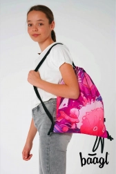 Stylish BAAGL drawstring backpack from the eARTh – Ufo by Mára Čmára collection, ideal for shoes, PE kit, and leisure activities. It offers a durable, wipe-clean material, lightweight construction, and drawstring closure with sturdy cords that also serve as straps for comfortable back carrying.