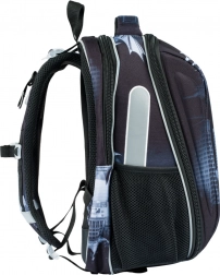 A light and stable school satchel for first-graders and younger pupils with a BATMAN Dark City design. It offers a rigid reinforced body for maximum protection of notebooks, a two-compartment layout for organized carrying, breathable back panel with the Air Ergo Adjustable system, and reflective elements for safety. Low weight of just 1000 g, capacity 23 l, and a practical organizer for all school essentials.