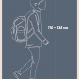The sliding back system and ergonomically shaped back panel ensure proper adjustment for different child heights and comfortable everyday wear.