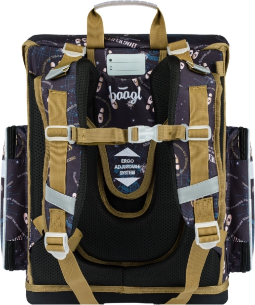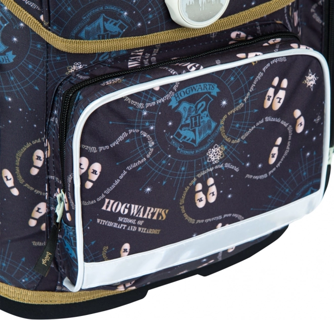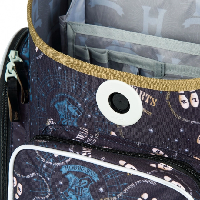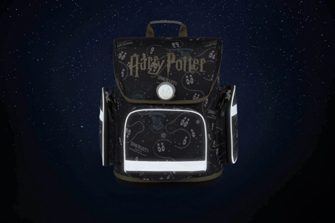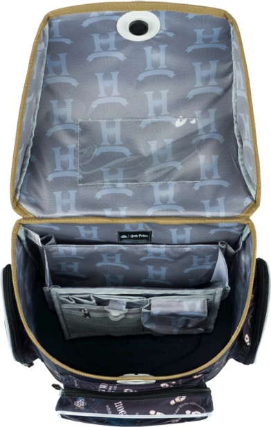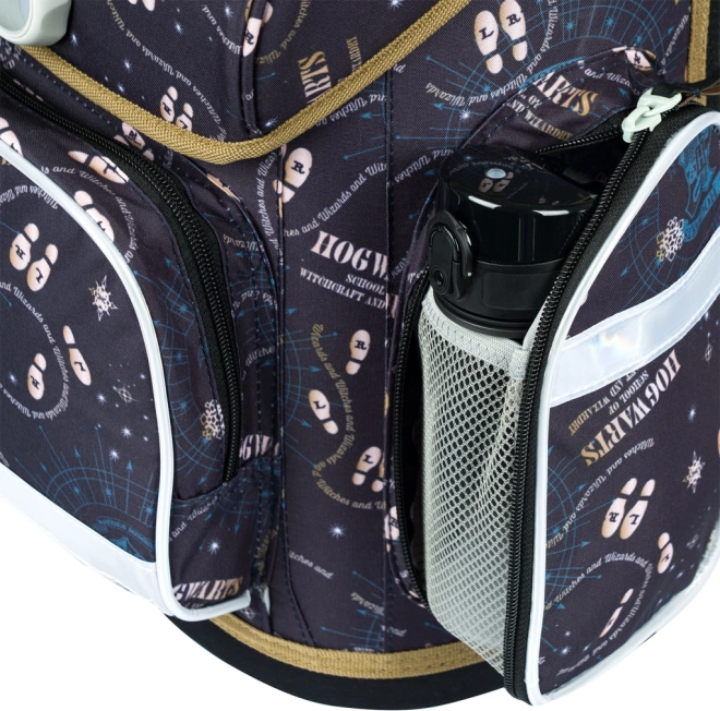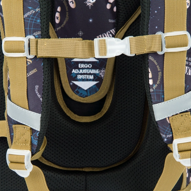 Lightweight, ergonomic school satchel for elementary school with a HARRY POTTER theme. Features a sliding back system ERGO ADJUSTABLE SYSTEM, Fidlock magnetic closure, a durable, water-resistant construction, reflective elements, and practical organizers and pockets for neat storage of school supplies.