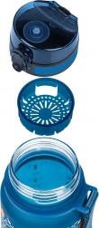 It includes a removable strainer for preparing fruit lemonades and tea. The volume scale helps you track your water intake, and the practical strap ensures comfortable carrying. By using a reusable bottle, you also reduce plastic waste from single-use PET bottles.