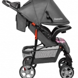 Looking for a practical, lightweight umbrella stroller for daily outings and longer walks? Lionelo Emma Plus is designed for the comfort of both child and parent: the smooth backrest adjustment to a lie-flat position and the adjustable footrest support proper posture during sleep. The extendable canopy protects in changeable weather, and the spacious basket under the seat holds shopping and travel essentials.