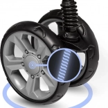 Durable EVA foam wheels handle city challenges. The front wheels with soft suspension absorb shocks and can be locked for straight-line riding.