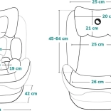 For enhanced safety, the seat is equipped with a 5-point harness with soft pads and PP and EPS side protection for effective energy absorption in the event of an impact. 7-step headrest adjustment and 4 recline positions ensure ergonomics and comfort at every stage of growth. The removable cover is easy to wash, making maintenance quick and worry-free.