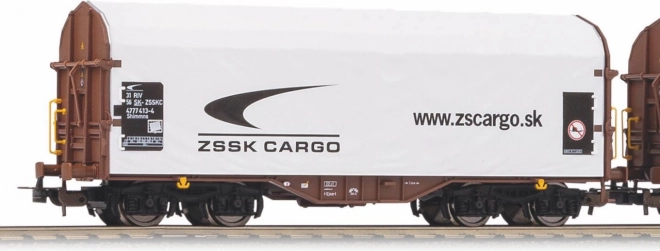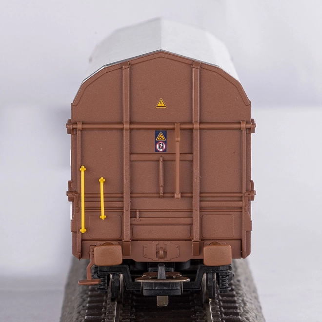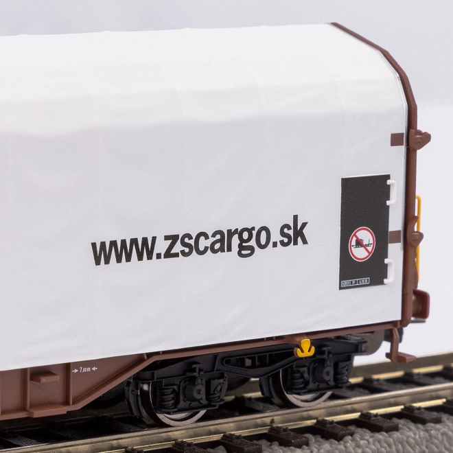 This set of two wagons is carefully designed with an emphasis on details, including intricately molded undercarriage castings and end walls with a tarp securing mechanism. Their covers can be removed, revealing a complex interior with loading beds for cargo - a sample in the form of a steel coil is included in the package. The wagons feature attractive contrasting details such as handles and anchors and boast high-quality paintwork and sharp prints capturing even the smallest details.