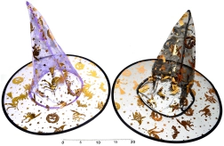 Stylish Wizard Hat is the perfect accessory for your Halloween celebration or costume party. It is made of transparent fabric and decorated with a gold print, giving it a mystical and elegant look.