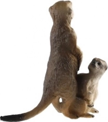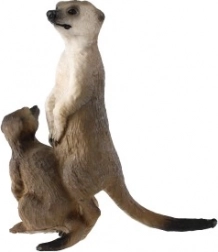 This precisely crafted figurine depicts an adult meerkat on alert with a pup by its side. The faithful fur texture and natural coloring give the model a realistic look, making it perfect for children’s play, school projects, or as a stylish decoration.