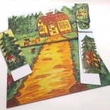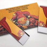 Theatre with curtain and proscenium, 14 puppets, 11 ring-bound scenes with floor, side flats