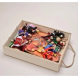 Each puppet is unique—made from solid wood and textiles, with minor variations in details. Puppet size 12–15 cm for comfortable handling.