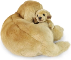 This cuddly plush Labrador, 27 cm in size, snuggles with its 13 cm puppy, creating a lovely duo for playtime and bedtime. The realistic design, soft fur, and careful handcrafting make it an ideal gift for animal lovers and young children.