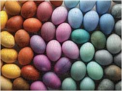 Puzzle with a motif of colorful eggs arranged in a smooth color transition, creating a visually stunning experience.