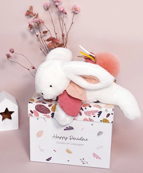 This gift set with a plush bunny is the ideal everyday companion—perfect for peaceful sleep, playtime, and as a tasteful decoration for the nursery. The bunny is made from very soft materials in harmonious, on-trend colors and provides a soothing effect for babies.