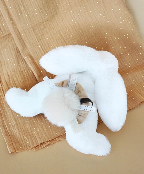 This cuddly bunny is designed to accompany children from their very first days. It combines extra-soft plush with gentle hues that have a calming effect. With quality craftsmanship, it meets European standards and is safe for everyday snuggles.