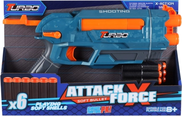 Get ready for action-packed adventures with Blaster Turbo! This blaster offers excellent range and safe fun thanks to the darts made from soft foam material.