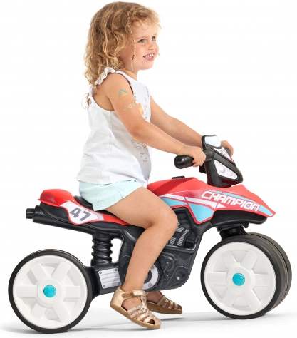 The red Falk Champion balance bike is a great choice for children learning to keep their balance and gain confidence in movement. The lightweight construction makes it easy to carry and control, so little ones quickly master their first riding skills. Thanks to its attractive design, it motivates active outdoor play.