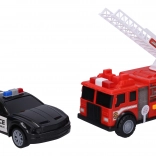 This set of police and fire truck will impress every child. Perfect for anyone who loves action and adventure. Both cars have free-rolling wheels, allowing easy handling and fast driving.