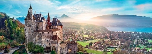 This panoramic puzzle with a romantic view of Menthon Castle overlooking Lake Annecy will delight lovers of beautiful landscapes as well as seasoned puzzlers. Thanks to the panorama format, it looks great on the wall and becomes a stylish decoration for your interior.