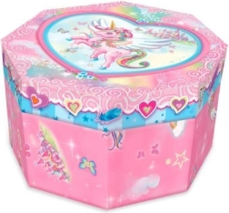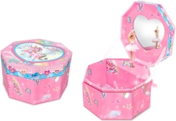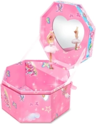 This musical box plays a classical melody and when opened, the figure starts to rotate. It requires no batteries thanks to a special mechanism.