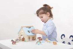 This wooden house with animals is the perfect toy for the development of children from 12 months. It is designed to inspire children to learn through play. The house includes various colorful shapes and animal figures that can be inserted into corresponding holes, improving eye-hand coordination.