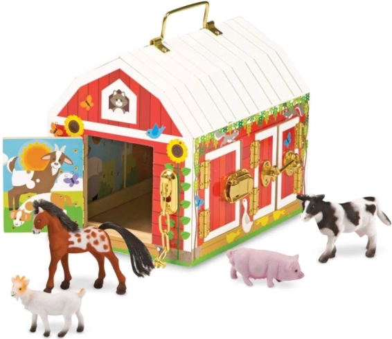 The barn is made of durable wood and metal, making it a long-lasting and safe toy for children.
