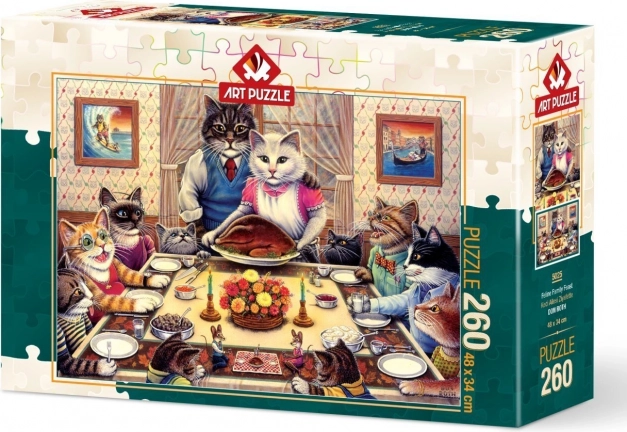 Discover a high-quality family jigsaw featuring a cat family motif that brings hours of relaxation and fun. Thanks to precise die-cuts and sturdy material, the pieces fit together perfectly, making assembly easier even for younger enthusiasts. Once completed, you'll have an impressive picture measuring 48 × 34 cm, ideal for framing or display.