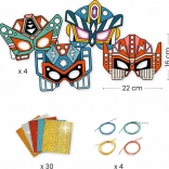 Includes everything you need: 4 pre-cut masks with self-adhesive zones, 30 sheets with metallic details, 4 elastics, and clear step-by-step instructions. Great for organized crafting at parties, clubs, or a shared family afternoon.