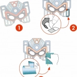 This creative set lets children easily and playfully decorate 4 super robot masks. Thanks to numbered adhesive areas, simply remove the cover paper and press on the metallic foils – the material adheres like magic, and the masks shimmer beautifully.