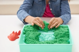 Includes 454 g of green sand, molds for sea animals and a castle, and a shovel for digging, scooping, and pouring. The sand is made from natural sand and is a great alternative to modeling compound – it promotes fine motor skills, creativity, and independent play.