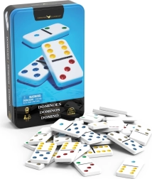 Enjoy classic family fun with a set of dominoes in a tin box. It includes 28 tiles with colored pips, game rules, and is ideal for 2–4 players ages 5 and up. Great for a family game night and for learning logic, matching, and basic math.
