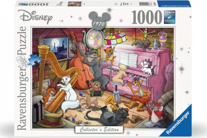 Ravensburger puzzle Disney The Aristocats with 1000 pieces. High-quality finish, precise die-cut, finished size approx. 70 × 50 cm. Great for relaxation or as a gift.