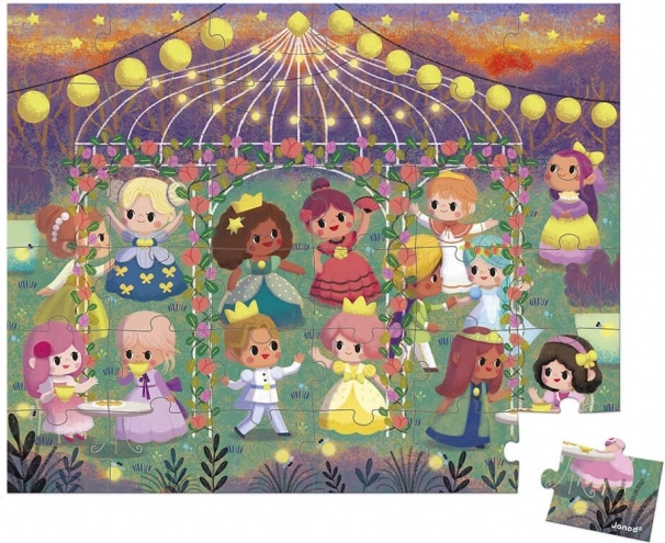 Discover the magical princess-themed puzzle from the brand Janod, packed in a practical suitcase ideal for home and travel. The puzzle features an image of lovely princesses and is suitable for children and adults. The package also includes a poster template for easier assembly.