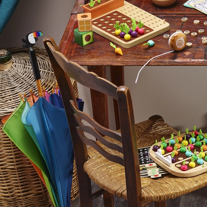 Brighten rainy days with a stylish kids’ umbrella featuring a cheerful toucan handle and a rainbow print. A quality metal frame and wooden handle ensure comfort and durability. ANDY WESTFACE design, made in France.
