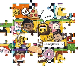 A colorful scene with popular emoji characters motivates puzzling and entertains for hours.