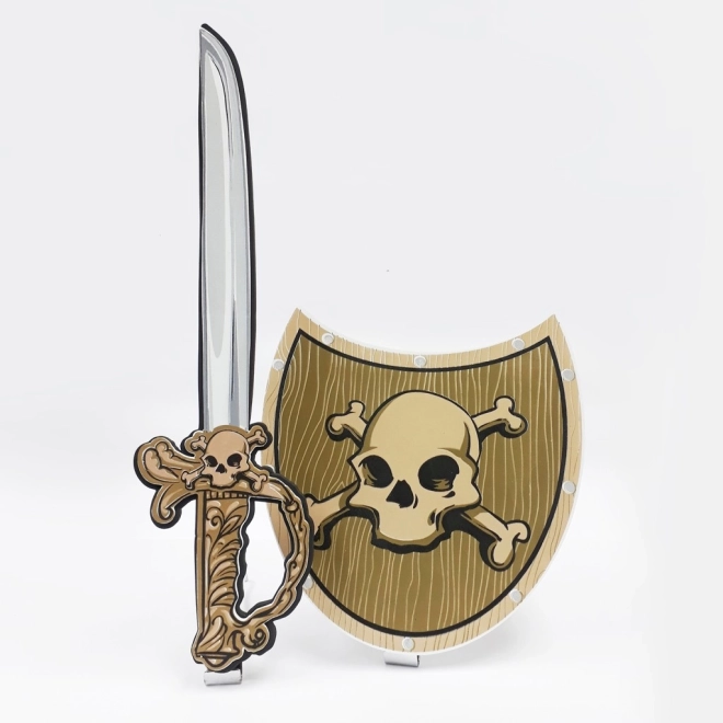 Foam sword and shield with a pirate motif for kids. Lightweight and safe set, ideal for costumes and at-home play. Supports imagination and active fun.