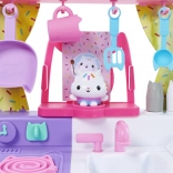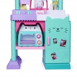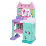 Introducing the Cakey Cat Kitchen set for kids from the world of Gabby’s Dollhouse. This play kitchen is a great addition to the Gabby’s Dollhouse toy line for girls and boys, featuring more than 20 kitchen accessories and standing over 91 cm tall. Cakey’s kitchen includes a stove, a sink with a drainer, 10 kitchen accessories and dishes, window-mounted hooks, 9 play food items, and a fridge with photos of Gabby and her kitties, where you can store play food, accessories, and other toys. The beautiful kitchen also comes with a large Cakey Cat figure and a special stand that can be attached to the window so Cakey can watch your culinary creations. Press the button on Cakey’s stand and turn the stove knobs to activate more than 20 sounds and phrases, 9 cooking sound effects, 3 music tracks, and 11 Cakey Cat lines from the popular Gabby’s Dollhouse series on Netflix. If you want to expand the little kitchen even more, there’s a shelf under the stove designed specifically for the Bakey with Cakey Oven (sold separately). The Cakey Cat kitchen playset is a must-have for all Gabby’s Dollhouse fans, letting them reenact scenes from their favorite cooking shows or prepare their own culinary creations for family and friends.