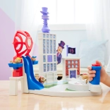 Get ready to save Adventure City with Liberty and the Junior Patrollers! Mayor Humdinger and Vee are up to something, and it’s up to Liberty and the Junior Patrollers to stop them! This set includes a mini PAW Patrol tower and various Adventure City skyline targets. It’s your mission to use your trusty Junior Patrollers pup launcher to stop Vee and Mayor Humdinger and save the day! Start by placing one of the Junior Patrollers on the launch pad. Once ready, pull back and swivel the pup catapult left and right to aim at 3 preset targets! Press the red button on the launcher handle to fire one of the pups at the giant top hat icon on the tallest building—then a giant image of Mayor Humdinger pops up. Now launch the second pup to knock him out of the way! After completing the first part, load the third pup into the launcher, aim at the top of the far-right building, and try to hit it to drop the jail cell door in front of the building and capture Vee! Complete all three parts and save the day! It’s big-time fun! This exciting playset also features a giant slide with a ramp in front of the PAW Patrol tower, just like in the movie, plus a control room and multiple play areas so you can recreate your favorite scenes from PAW Patrol: The Mighty Movie! With PAW Patrol toys, kids can develop imagination and motor skills while reliving their favorite movie moments. For even more fun and thrilling missions inspired by the PAW Patrol series, collect all the toys from the PAW Patrol movies—like the awesome Command Aircraft Carrier—and all the special-edition PAW Patrol toys for girls and boys, such as Mighty Pups, Aqua Pups, and Big Truck Pups figures and playsets (each sold separately). Enjoy endless adventures with the Liberty and Junior Patrollers playset from PAW Patrol: The Mighty Movie!