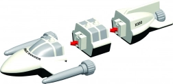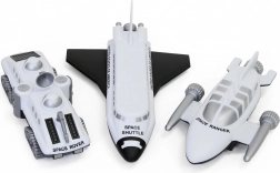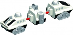 The set includes six thematic kits: police, fire, construction, racing, space, and railway. Each set contains 9 pieces, allowing for more than 100 different combinations. Become a designer of space vehicles and enjoy limitless creative possibilities.