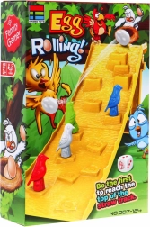 The Falling Egg game offers simple rules and lots of laughter. The goal is to get your bird to the top of the track first. After rolling the die, move according to the number of dots, or—if the bird symbol appears—choose whether to move up one space or place the egg at the top and try to knock down your opponent with it.