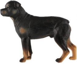 The figure accurately mimics the features and colors of a Rottweiler, making it a great decoration or toy for educational purposes.