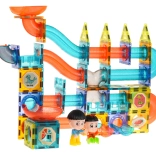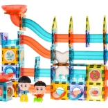 Discover a world of creativity with this colorful set containing 128 magnetic pieces. This kit allows you to build a marble run in any layout. The pieces are made of high-quality material, smooth, and carefully crafted. Thanks to the built-in magnets, they connect easily and ensure stable structures. The package includes a picture guide for assembling sample tracks.