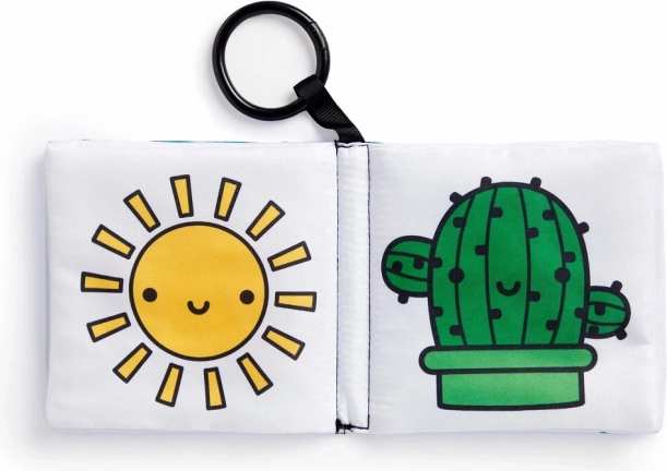 A durable plastic ring enables quick and secure attachment to a stroller, car seat, or bag – the book is always at hand and won’t get lost.